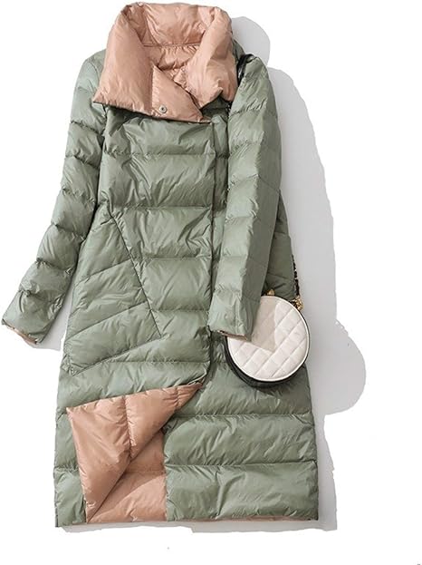 Amazon Co Jp 女子ダブルダウンコートダブルブレストウォームパーカーアウターダックダウンロングジャケット冬のタートルネックホワイトを両面 Color Green Down Jacket Size Large ホーム キッチン